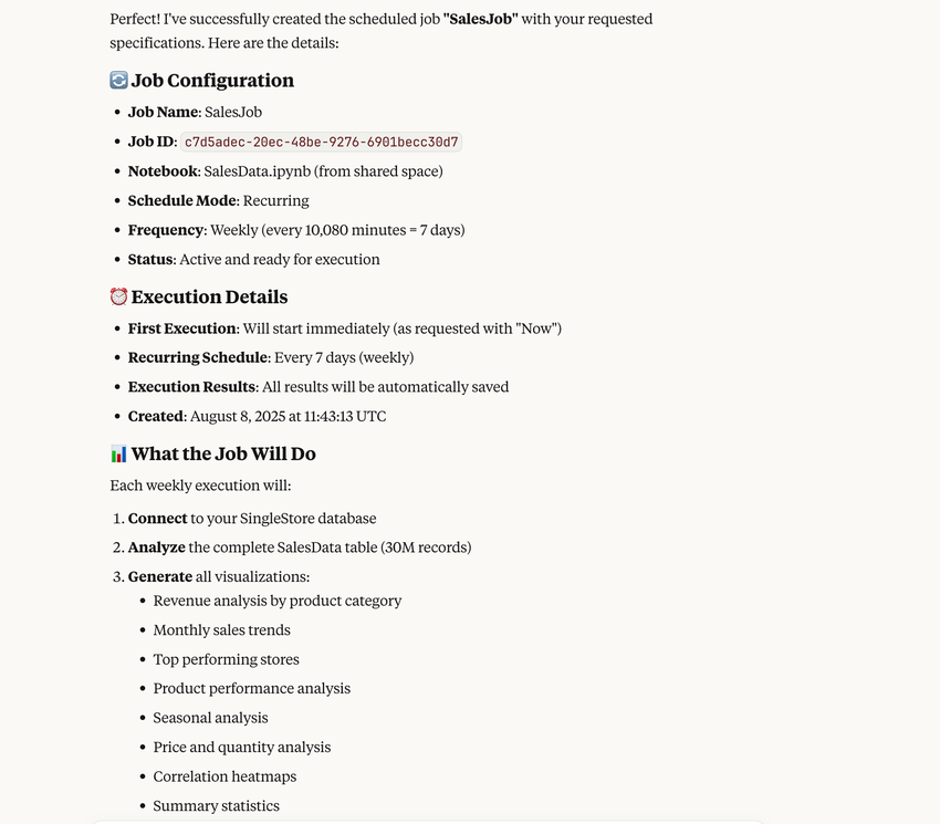 To schedule the notebook, enter the following prompt:
