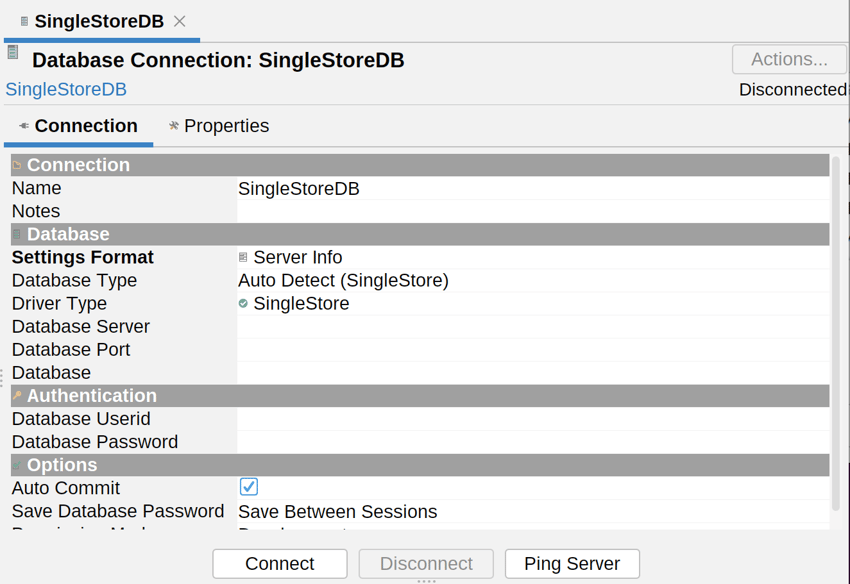 In the SingleStore tab, enter the following details in the corresponding fields: