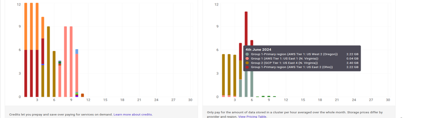 As these were the only three days in June in which this workspace stored data, the total data storage usage for the month of June is: