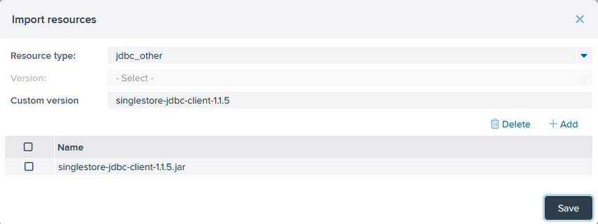 For convenience, you can use the singlestore-jdbc-client-<version> format. For example, singlestore-jdbc-client-1. 1. 5. This name is visible in the dialog where you can configure JDBC data sources. -