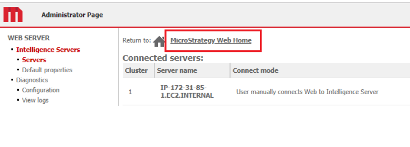 Click on the MicroStrategy Web Home on the Administrator Page: