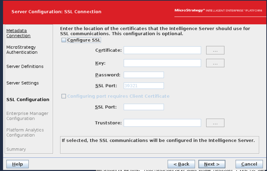 Provide the Intelligence Server IP address, or server name, and a port number if applicable.
