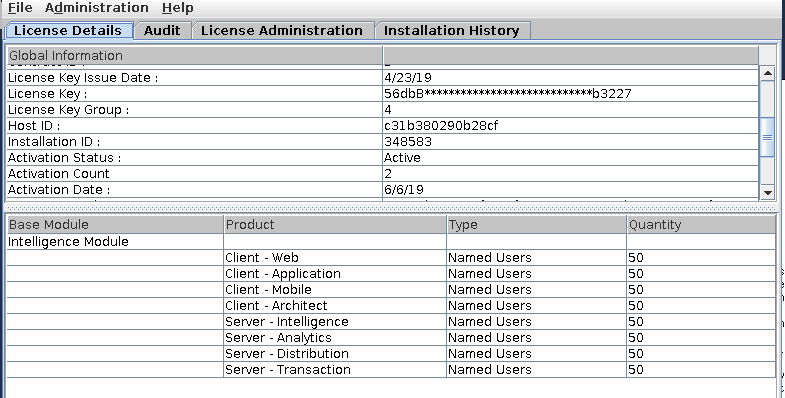/home/mstruser/MicroStrategy/bin/mstrlicmgrand check the first screen (shown below).The license status should be Active; otherwise, click on the License Administration tab and follow the screen prompts to request an activation code. MicroStrategy will send the code to your registered email. Using the same screen enter the Activation code to activate the installation.