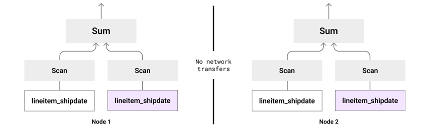 SELECT COUNT(l_orderkey), o_orderdate, l_shipdateFROM lineitem INNER JOIN orders WITH (use_projection='orders_shard_orderkey_sort_orderdate') ON lineitem.l_orderkey = orders.o_orderkeyWHERE l_shipdate BETWEEN '1992-01-01' AND '1992-01-31'GROUP BY l_shipdate, o_orderdate;