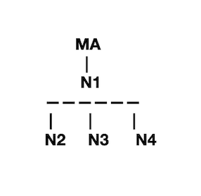 The distribution tree always fans out one link down from the master aggregator, as shown below.