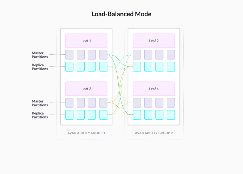 In load_balanced mode, primary partitions are evenly placed on leaves. The primary partitions on every leaf in an availability group have their replica partitions spread evenly among a set of leaves in the opposite availability group.