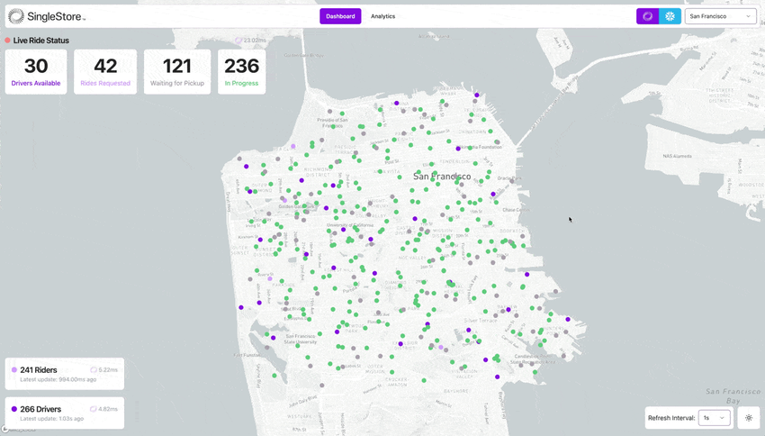 To help demonstrate what the combination of Snowflake data, the SingleStore app, and Iceberg tables can deliver, SingleStore has created a real-time ridesharing simulation.